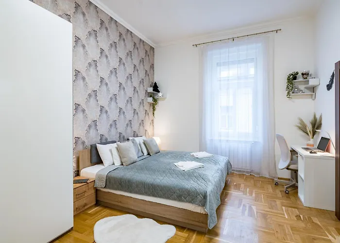 El apartamento Silver Swan Downtown With Parking dispone de facilidades de autoservicio, como una cocina completa y una zona de comedor para disfrutar de sus comidas. El apartamento está a unos 5 minutos a pie de la estación de metro Blaha Lujza tér y a tan solo 5 minutos a pie de la parada de autobús Szoevetseg utca.